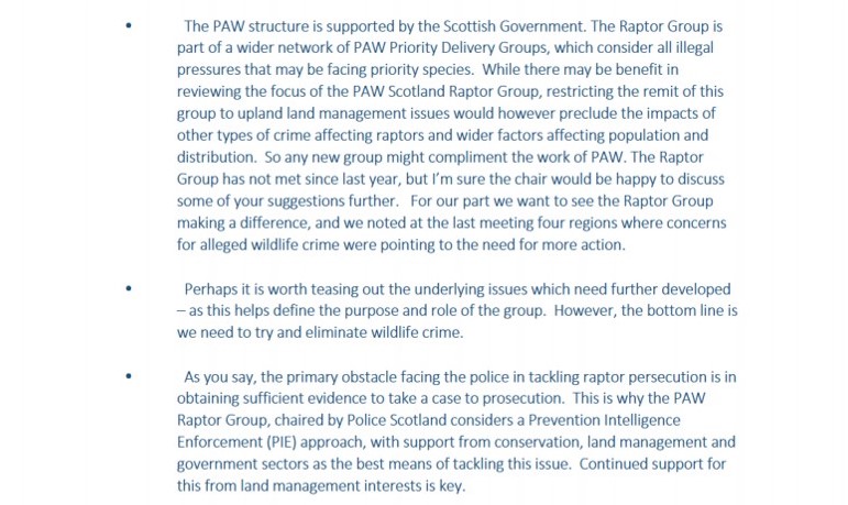 I’ll be blogging about some more communications between these two organisations in due course, also uncovered via FoI and related to grouse moor management, the Werritty Review and raptor satellite tracking.