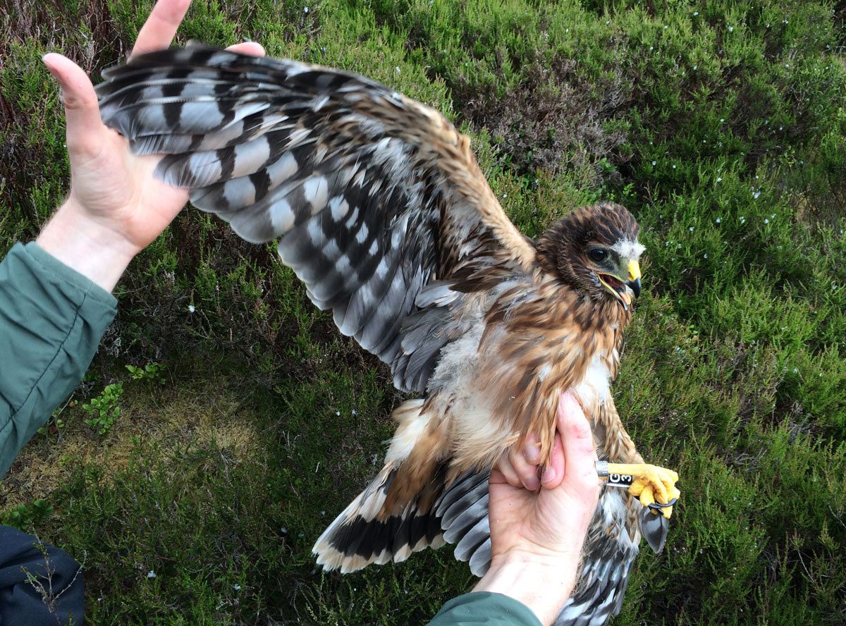 [Hen harrier Yarrow being fitted with a satellite tag prior to fledging. Photo by RSPB]