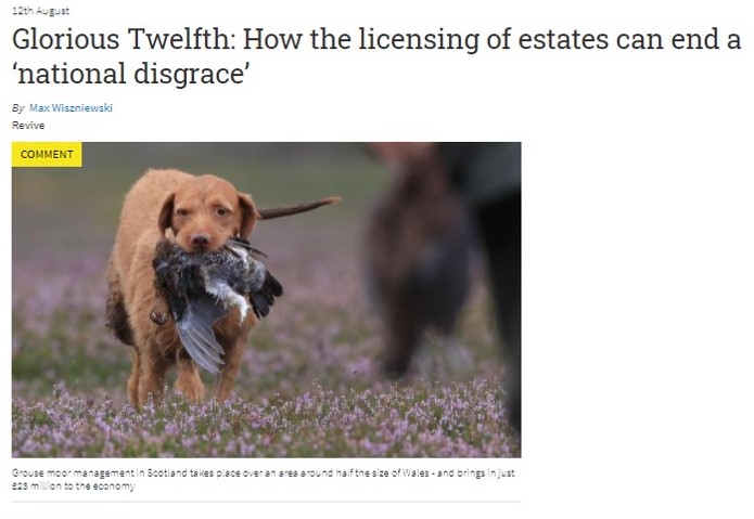 Max Wiszniewski, the campaign manager for Revive, the coalition for grouse moor reform, had this article published in The National last week, timed to coincide with the opening day of the grouse-shooting season.