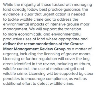 I know it is slightly outside of the scope of this blog, but the statement “…and introducing further measures such as preventing trail hunting.” is hugely significant. I note that they do not say ‘ban trail hunting’, but if – and it is a very big IF – this is enacted (and more importantly enforced) what the Scottish Government is actually saying is that they will introduce a proper ban on fox hunting. For me that is the stand out policy in all of this. Pity they are not so (potentially) rigorous with DGS.