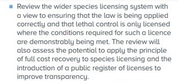 Here’s what the Programme for Government (p90) says about its General Licence review: