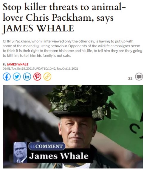 CHRIS Packham, whom I interviewed only the other day, is having to put up with some of the most disgusting behaviour. Opponents of the wildlife campaigner seem to think it is their right to threaten his home and his life, to tell him they are they going to kill him, to tell him his family is not safe.
