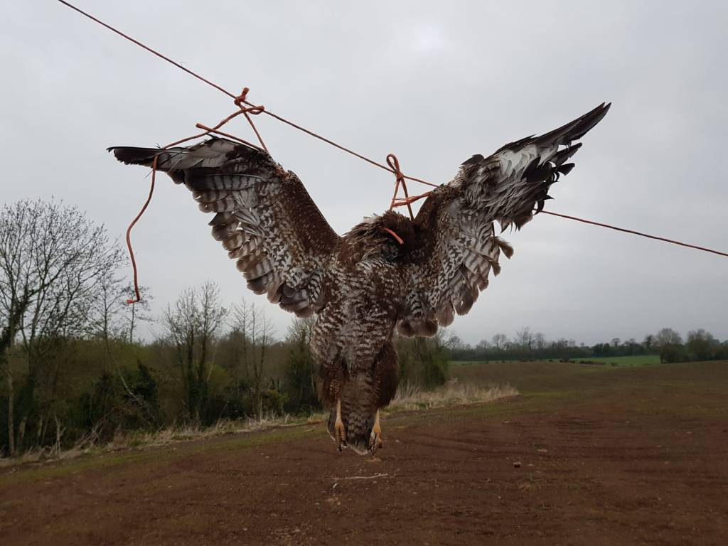 Upon arrival, the NPWS searched the area and found one dead Buzzard strung up by its outstretched wings to an electricity post and another dead Buzzard strung up by its legs to a fence stake. Following a line of inquiry, Mr Buckley established that Mr. Crawford was farming the land where he found the two dead Buzzards. Accompanied by NPWS Officers Robert Edge and Colm Malone, Mr. Buckley then interviewed Mr Crawford under caution about the incident.
