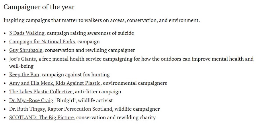 Thanks also to TGO for providing links next to each candidate – it’s a brilliant way to reach new audiences.