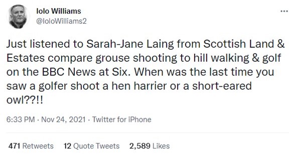 Yesterday I switched off the Beeb news after beginning to hear the hogwash of tosh of this biased report. News? More of a puff piece on behalf the grouse morr owners. The beeb didn’t balance it out. It’s like rolling out Nigel Lawson as a balanced opinion to climate change (which the beeb has done in the past in the name of false balance).