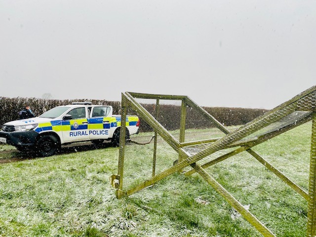 [Police attending the scene of a crow cage trap in January 2021. Photo via Nottingham Police]