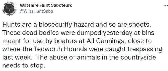 Wiltshire Hunt Saboteurs have posted the following on Twitter this morning: