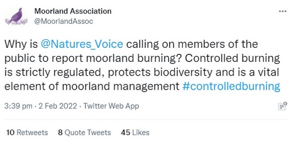 England’s grouse moor owners’ lobby group, the Moorland Association, reacted to the RSPB’s request for information with the following tweet: