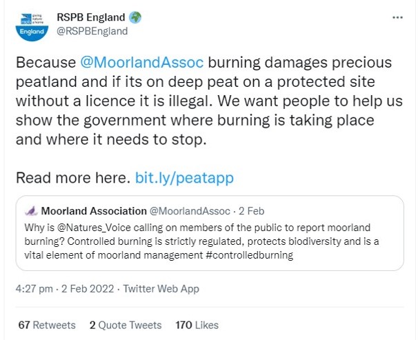 The RSPB also responded to the Moorland Association’s tweet, again explaining for the hard of understanding why these reports are important: