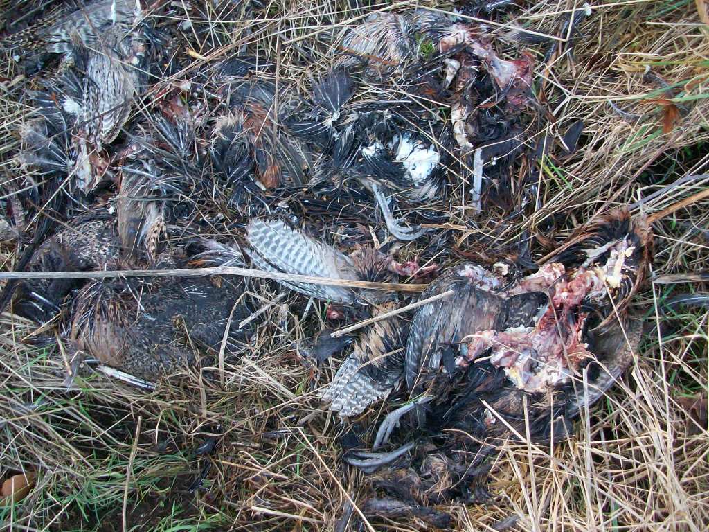 This morning another blog reader visited the dump site and took more photos (see below). He told me there were five waders (he ID’d as woodcock) and another pile of birds nearby that looked to have been dumped a few weeks ago (pile included pheasants, teal and woodcock).