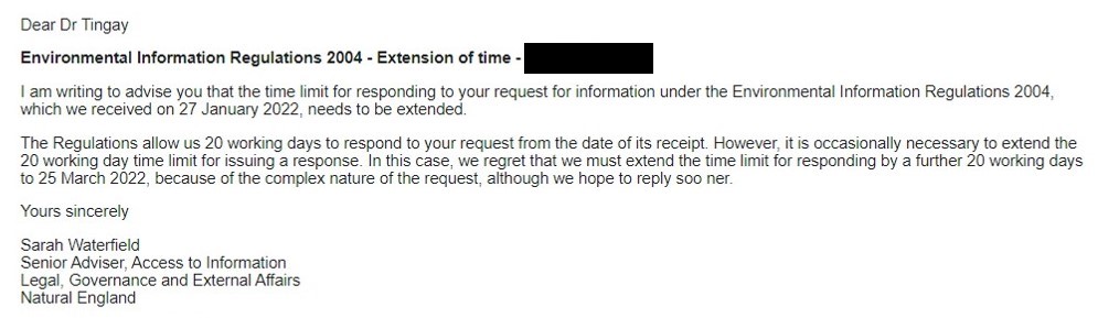 The response was due tomorrow. However, today Natural England has sent me this: