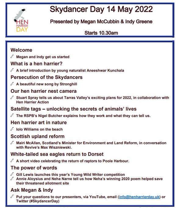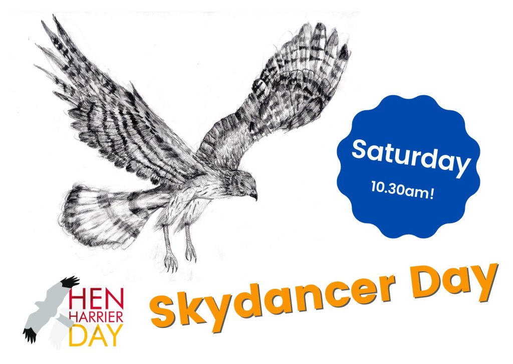 This year, Skydancer Day will take place on Saturday (14th May 2022) from 10.30am and can either be watched live on Hen Harrier Action’s YouTube channel (here) or you can watch the recorded video any time after the event.