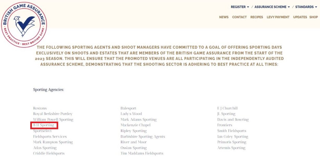 Now, according to the website of British Game Assurance (formerly the British Game Alliance but rebranded in the last year), BH Sporting is one of a number of sporting agents that have: