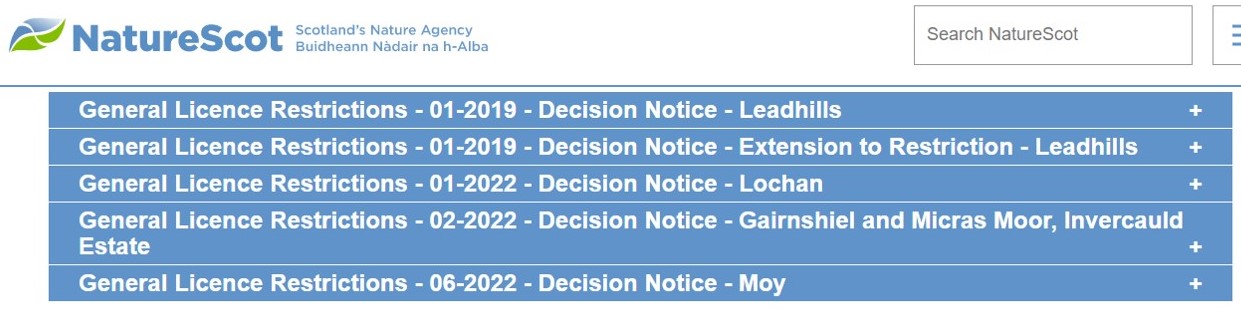 It’s all a massive farce, of course, because the estate has already had one opportunity to appeal the decision, as part of the formal restriction process. I.E. NatureScot has to provide a written ‘notification’ to an estate when a restriction has been recommended, but before the final decision has been made. The estate then has 14 days to respond (appeal) and explain why the restriction is unwarranted. On receipt of that appeal, Naturescot makes its final decision and if it’s decided to go ahead and impose the General Licence restriction, then the estate is given ANOTHER opportunity to appeal the decision within 14 days.