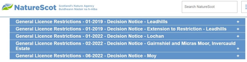 No matter really, because it’s NatureScot’s response to the appeal that’s really of interest, and in this case, Moy Estate’s appeal has failed and as of last week, the official restriction notice is back on public view on NatureScot’s website: