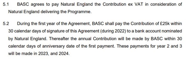 Well, it seems this cosy arrangement is continuing, only this time with a bigger bung and the same condition that requires Natural England to refrain from saying anything bad about BASC: