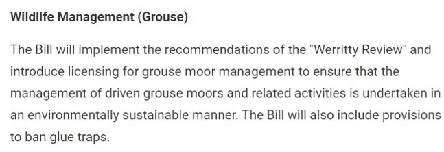 The draft bill on grouse moor management is one of 18 bills the Government proposes to introduce by the end of June 2023. The statement on it is concise and short on detail but is nonetheless significant for those of us who have campaigned on the subject for years: