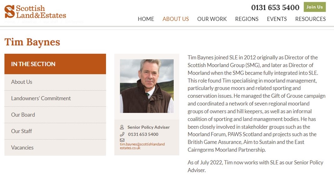 Perhaps Tim Baynes’ perpetual denial of the bleedin’ obvious explains why he is no longer employed as ‘Director of Moorland’ at Scottish Land & Estates: