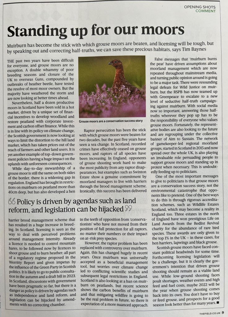 2. …”Forthcoming licensing legislation will be a challenge, but it is clearly the government’s intention that driven grouse shooting should remain as a viable land use.”… Amidst all the other gibberish, for once, I would totally agree with Baynes. And therein lies the problem.