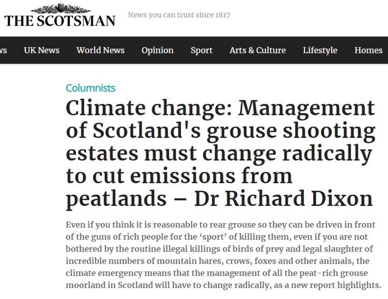3 thoughts on “Management of Scottish grouse moors ‘must change radically’ to cut emissions from peatlands – Dr Richard Dixon”