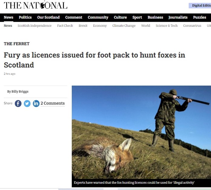 3. So let me get this straight, it’s apparently a ‘conservation objective’ for some to license the killing of red grouse for fun but now some of the same folks are kicking up about licensing the killing of foxes. Hmm. Anyone else see the contradiction here? The wonderful world of licensing eh? The shape of things to come..?