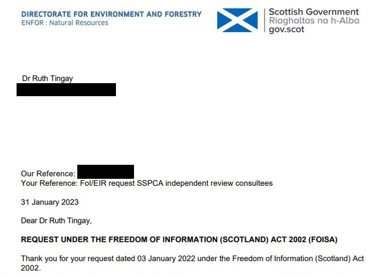 7 February 2023: Scottish Government tells journalist from The Scotsman that it will provide a response at the same time the Taskforce review on SSPCA powers is published (here).