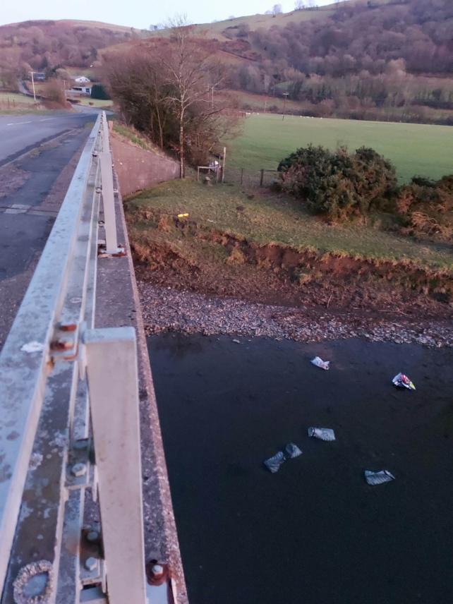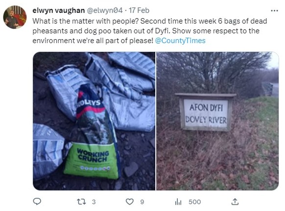 Images of the sacks in the river were sent to County Councillor Elwyn Vaughan, who posted images on Twitter and alerted Dyfed Powys Police.