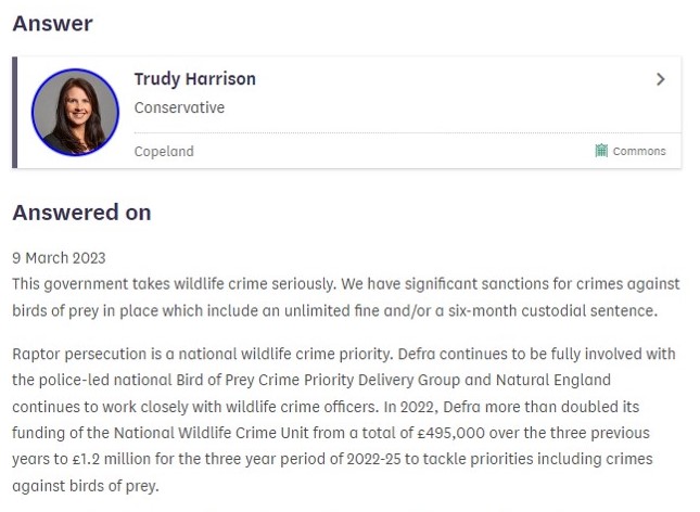 Is it significant that there’s been a recent flurry of parliamentary questions about raptor persecution? I like to think so.