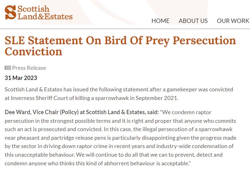 The only game-shooting organisation that has responded to the news of Parker’s conviction is landowners’ lobby group, Scottish Land & Estates (SLE).
