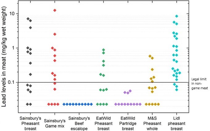 Wild Justice’s latest results demonstrate that, with the exception of the partridge breasts sold by ‘Eat Wild’, all of the gamebird meat tested contained high levels of poisonous lead, well above the legal limit set for non-gamebird meat such as pork, chicken, lamb and beef.