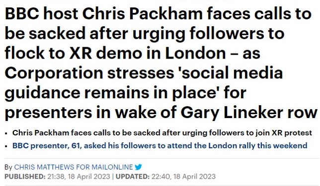 It was published in response to a short video Chris had posted on Twitter about attending a Biodiversity Earth Day rally in London today, which Chris described as “a family-friendly affair” and which the organisers had described as ‘a procession for nature, a parade of reflection and celebration, with masks, costumes and nature based art to honour and respect our natural world and all endangered species‘.