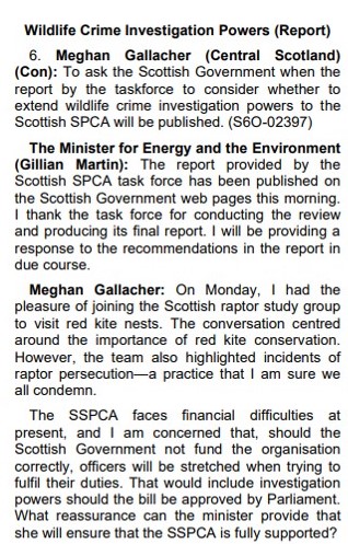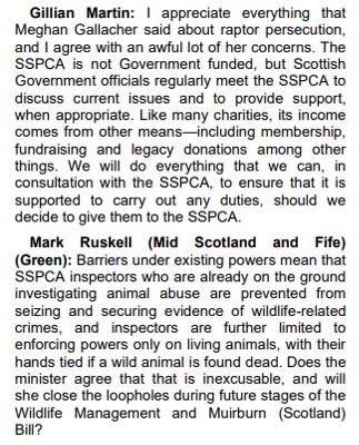 4. Isn’t this something of a surprise? “Meghan Gallacher (Central Scotland) (Con) I had the pleasure of joining the Scottish raptor study group…” and “However, the team also highlighted incidents of raptor persecution…” among other enlightened comments.