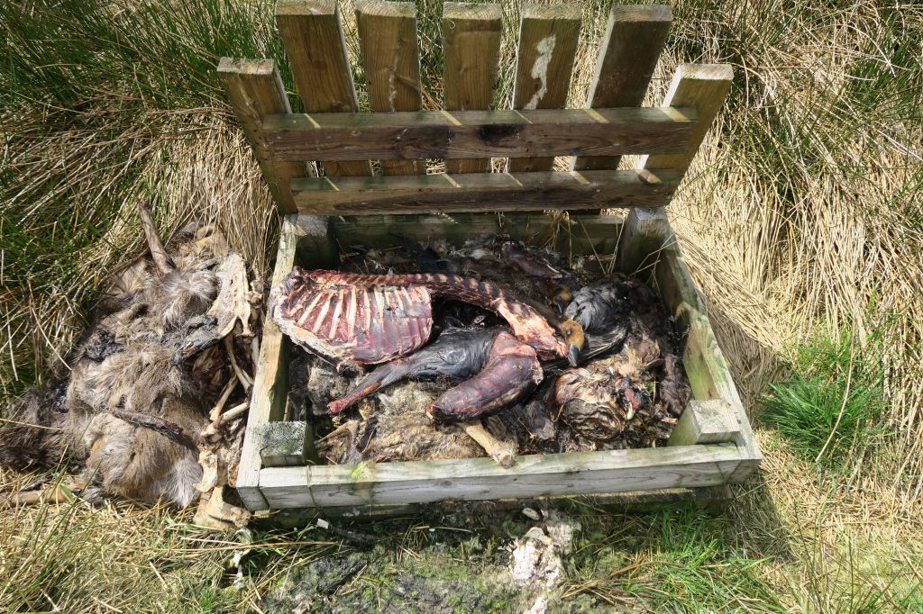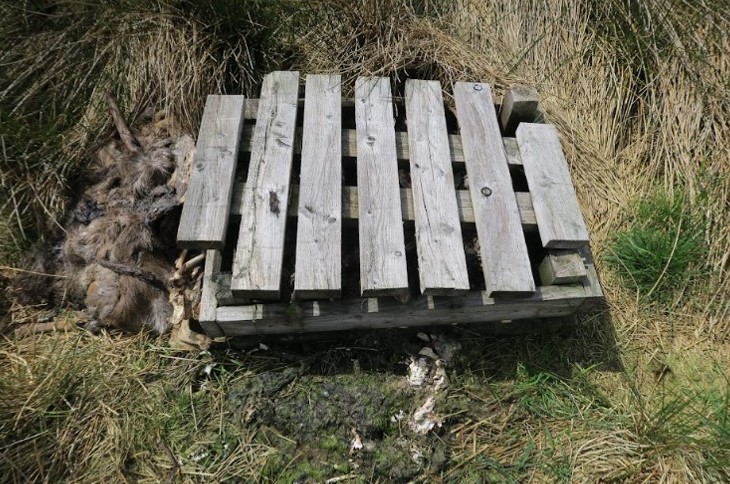 The covered ‘stink pit’ contained rotting carcasses. The stench is used to draw in mammals to the site, which is surrounded by snares. Photo: League Against Cruel Sports