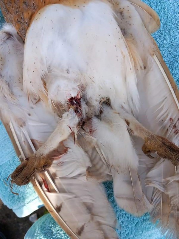 This was a horrific injury to the owl, a beautiful bird. I would question whether a rat deserves to suffer the pain and distress of these vile traps. Just plain cruel.