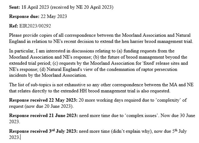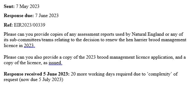 For several months now I’ve been waiting for Natural England to respond to a number of Freedom of Information/Environmental Information Regulation requests that all relate to the hen harrier brood meddling ‘scientific trial’.