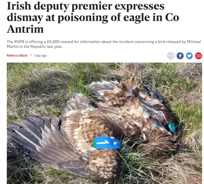 The outrage caused by the illegal poisoning of these young eagles has led to widespread media coverage, e.g. The Irish Post, Belfast Live, Belfast Telegraph, Irish Examiner, ITV news, BBC news, Irish Mirror