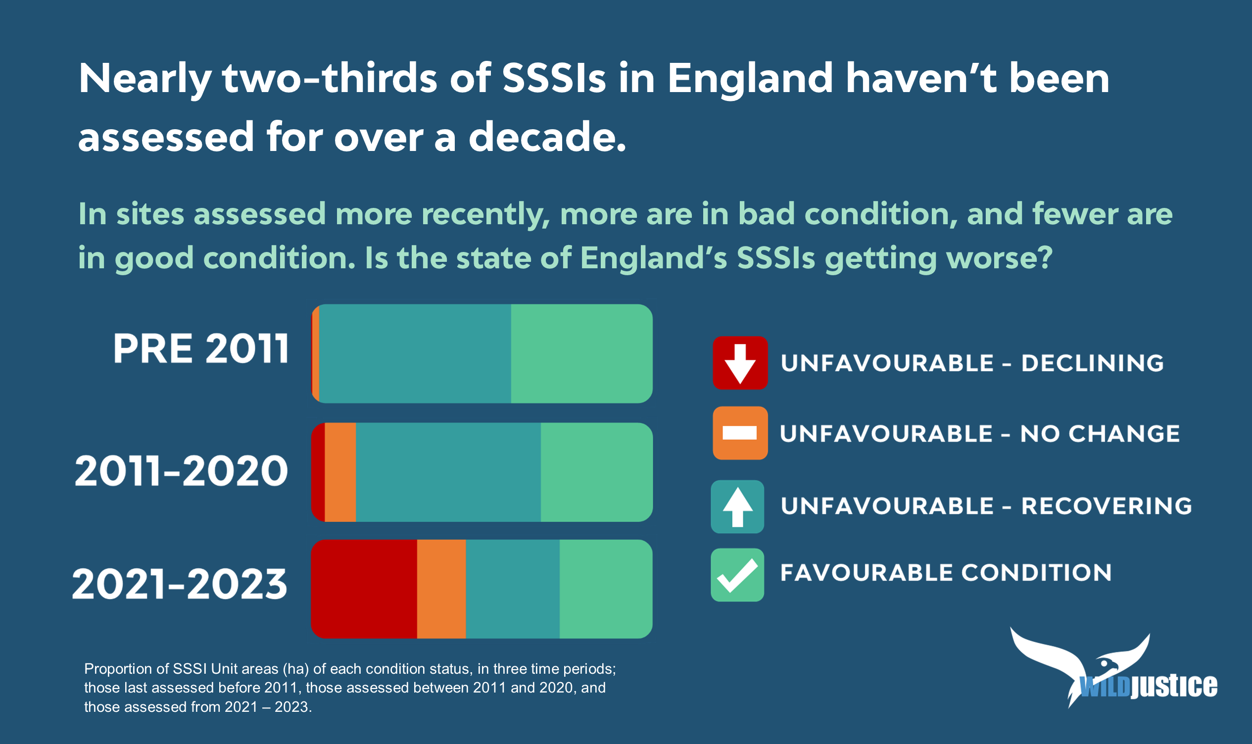 3. A report by Wild Justice predicts that if the backlog of condition assessments were to be rapidly updated, English SSSIs would be shown to be in a worse state than current estimates admit.