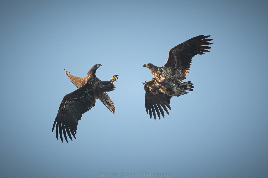 Two of the young reintroduced white-tailed eagles. Photo: Ainsley Bennett