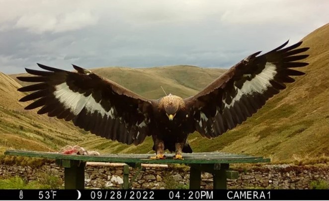 Before her disappearance, the South of Scotland Golden Eagle Project team’s round-the-clock surveillance of the golden eagles, showed that Merrick was thriving and exploring all over south of Scotland and Northern England in the south of Scotland. Merrick was photographed on her trip in Weardale and filmed in Nidderdale Area of Outstanding Natural Beauty.