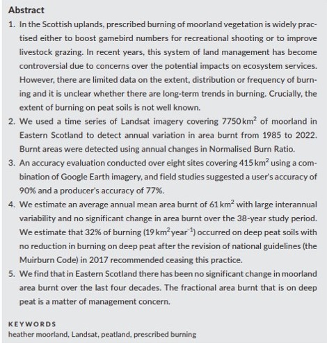 The paper, Assessment of peatland burning in Scotland during 1985-2022 using Landsat imagery, was authored by B.D. Spracklen and D.V. Spracklen and was published on 14 December 2023 in the journal Ecological Solutions and Evidence.