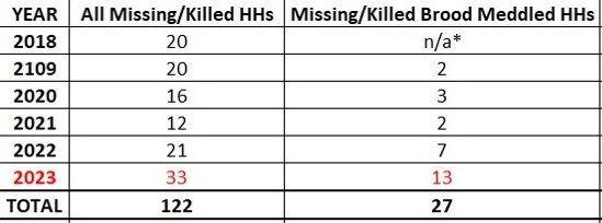With 33 hen harriers now known to have gone ‘missing’/been deliberately killed in 2023, this has been the worst year for hen harrier persecution since brood meddling began in 2018.
