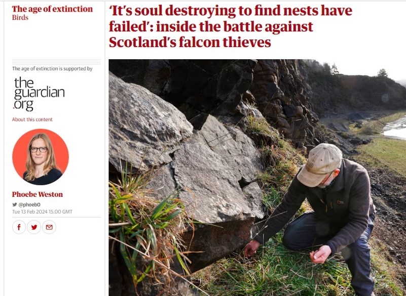 Most media outlets have simply summarised the press releases about Operation Tantallon issued by Police Scotland and the Crown Office, but the Guardian newspaper has published from a different angle, focusing on the work of Scottish Raptor Study Group (SRSG) member George Smith, whose 40 years of dedicated and detailed monitoring of peregrines in south Scotland helped bring the successful prosecution against Timothy and Lewis Hall.