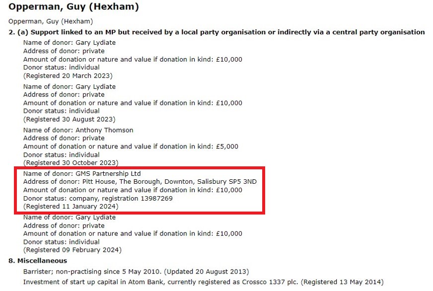There’s no suggestion that the £10,000 donation made in January 2024 to Opperman from GMS Partnership Ltd is underhand (unlike allegations made about some of the donations Opperman has previously accepted (see here but also here where a Government probe cleared Opperman) but the donation from GMS Partnership Ltd is certainly interesting given Gilruth’s new role as Chief Exec of the Moorland Association.