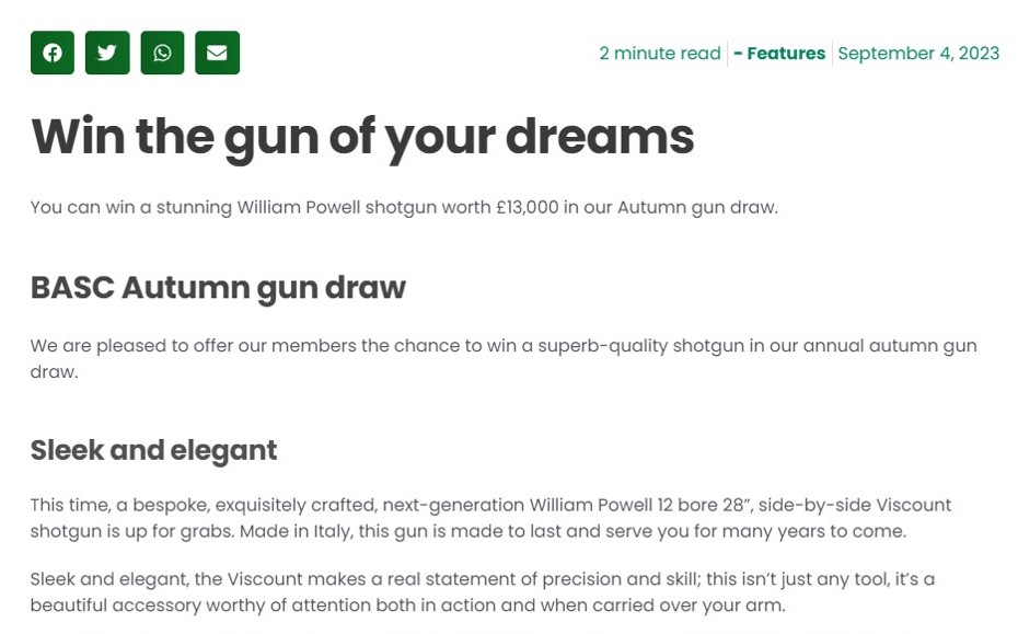 And surely neither would the British Association for Shooting & Conservation (BASC) be accepting generous raffle prizes worth £13,000: