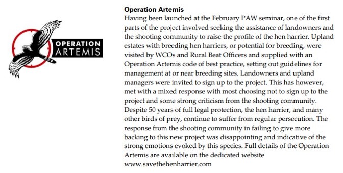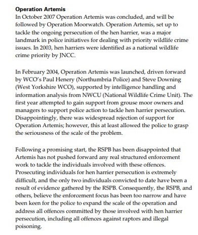 Those of you with long memories will remember Operation Artemis, another police-led initiative launched twenty years ago in 2004 designed to work in ‘partnership’ with grouse moor owners to tackle the illegal killing of hen harriers. Here’s some info about it from the RSPB’s 2004 Birdcrime Report: