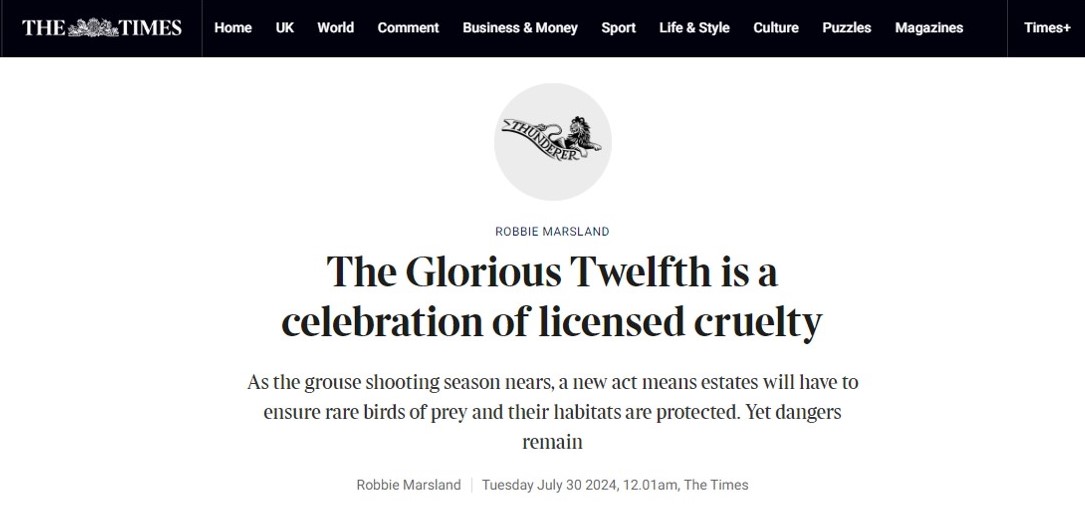 The Times published an opinion piece yesterday written by Robbie Marsland, Director of the League Against Cruel Sports (Scotland) and a founder member of REVIVE, the coalition for grouse moor reform: