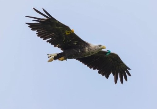 From 2007 to 2011, 100 eagle chicks were brought from Norway and were released in Killarney National Park, Co. Kerry. Phase 2 of the reintroduction, by NPWS, continued in 2020 with more young individuals released at a number of sites across Ireland to bolster the population. Released birds were wing-tagged, with tag colours relating to their year of birth and codes to identify individuals, and many were fitted with satellite tags to provide accurate details of their locations.