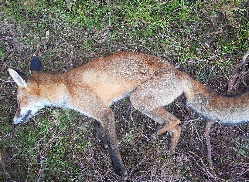 A snared fox on a grouse moor that will have suffered a slow, tortured death. Photo from a report by OneKind and League Against Cruel Sports entitled, Cruel and Indiscriminate: Why Scotland Must Become Snare-Free