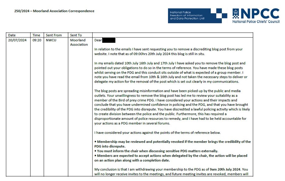 The circumstances of this case, and the reason it was discontinued, have now been reported in the RSPB’s 2023 Birdcrime Report (page 25), reproduced here: