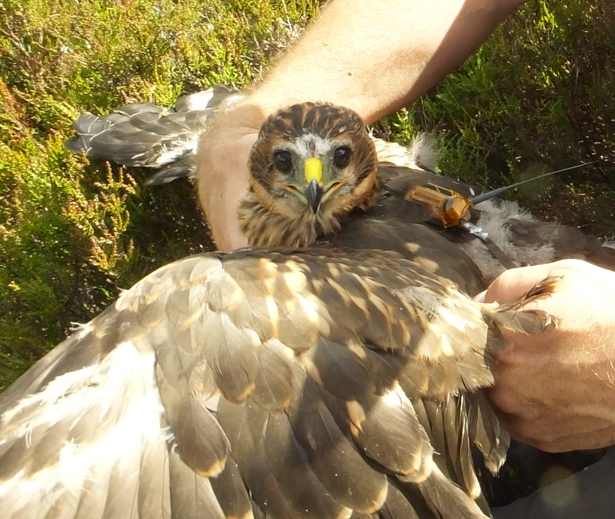 Satellite-tagged hen harrier. Photo by RSPB